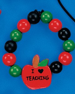 クリスマスカラーの赤、緑にブルーベリー (紺) 色を加えた 3色の木製ビーズ玉とクリスマスにちなんだ木製モチーフが 3個入ったブレスレット作成キットです。 1セットで 3個のブレスレットが出来上がります。