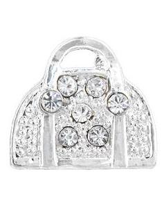 ラインストーンが 7個付いたハンドバッグ型チャーム 3個セットです。チャームのバック面にコードが通せるデザインで、 5 - 6mm幅のレザーやサテンリボンに通せます。