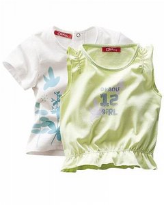 [色・デザイン] 白とライムグリーンの 2枚組。白は半袖 Tシャツでフロントに草木や蝶のプリント柄。グリーンは鳥と蝶のプリント柄になります。