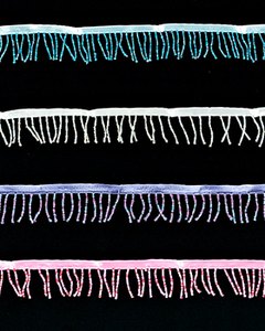 ビーズの房付きリボンです。長さは 45cm。クラフトにどうぞ。