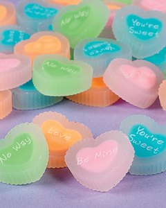 縁取りのあるハート型の消しゴムで、 “Be Mine“Honey” “No Way” “Love” “You're Sweet”のフレーズが入っています。 お色、フレーズはお任せください。