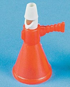 ネオン色のメガホンの形の笛です。プラスチック製、3cm大。簡単な雑貨おもちゃですので音はあまり期待できませんが、デザイン性を楽しんでいただければと思います。