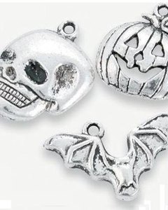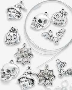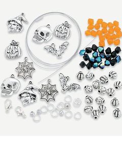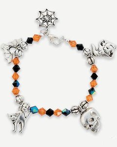 ハロウィンカラーのプラスチック製ビーズとハロウィンにちなんだチャームで作るブレスレット。