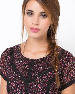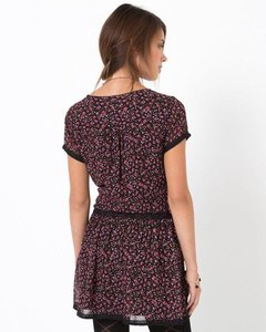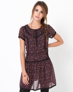 [色・デザイン] ローズプリントに黒のレース使いがガーリーなショート丈のワンピース。レギンスと組み合わせてもかわいいです。