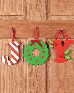 アルファベット J O Y の 3文字を飾り付けて壁掛けを作るキットです。