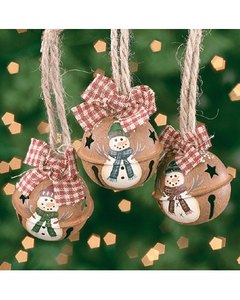 3.5cm大のブリキ製の鈴にかわいい雪だるまがトールペイント調に描かれています。クリスマスツリーはもちろん、クリスマスプレゼントのラッピングに付けてもお洒落です。