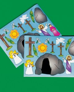 他のコミカルなシールワークとは少し雰囲気が異なる「復活祭」を描くワークです。カトリ ック系幼稚園のお子様は園でイースターにちなんだお話を聞いていて親近感があるかも知れません。シールシートの大きさは 12cm x 17cm。