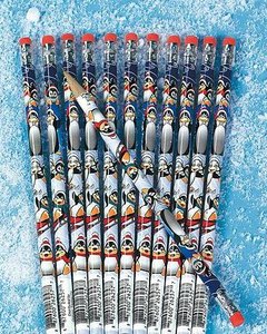 サンタの帽子をかぶった愉快なペンギン柄の鉛筆です。消しゴム付き。