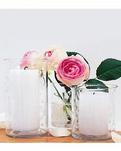 直径 9cm大、高さ 10cmのガラス製キャンドルホルダーです。画像 1枚目左側になります。市販のキャンドルを入れて卓上の演出にどうぞ。