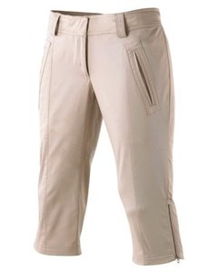 [色・デザイン] お色はベージュ。ステラ マッカートニーのゴルフゴルフウェアラインの七分丈パンタロン。光沢のコットン素材で、美しいラインです。 5枚目の画像はフルレングスの商品の画像になります。イメージの参考になさってください。