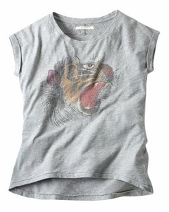 [色・デザイン] グレー地に大きなトラの顔プリント。ジーンズによく似合います。