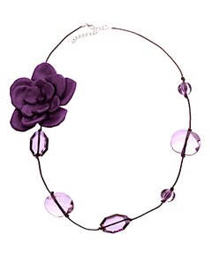 [色・デザイン] サテン地のお花と大きなアクリルビーズが華やかなネックレスです。お花の大きさは直径=10cm。