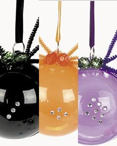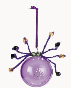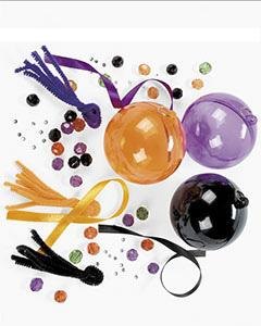 ハロウィンカラーのプラスチック製容器にキットのモールとビーズで足や目を付けて作るオーナメントです。