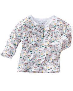 [色・デザイン] ロンドンのダブルデッカーや赤い公衆電話ボックス、ビッグベン、ユニオンジャックなどがかわいいです。七分袖。フロントスナップボタン開閉。肌着や薄手のTシャツ、部屋着、夏のパジャマトップとしてどうぞ。