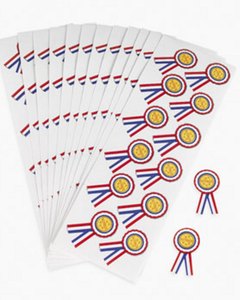 2.5cm大のロゼット(花メダル)柄のシールです。 1シートに 12枚のメダルシールが付いています。ご褒美シールにどうぞ。