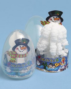 プラスチックカプセルの中に入っている雪だるまに魔法の液体をかけると...雪だるまが少しずつ大きくなります。