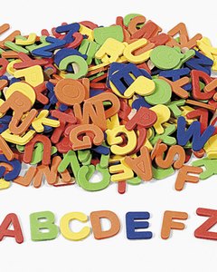 フォーム製のアルファベットシール。 5色、 3cm大。5シートで 130個のアルファベットが入っています。