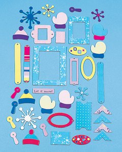 冬をテーマにしたチップボードのパンチアウトです。フレーム、タグ、ボーダー、ラベル、スライド、コーナーなど 35ピース入っています。