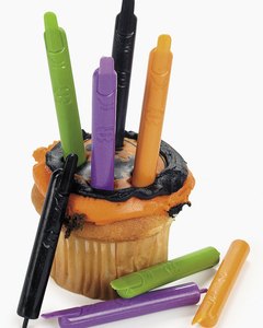魔女の指に見立てたプラスチック製のピックスティック。市販の、手作りのカップケーキやパンプキンパイ、ポテトサラダなどに差して飾ります。 1セットに 4本入っています。プラスチック製なので、毎年使えます。
