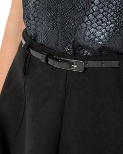 [色・デザイン] お色は黒、スウェード調。バックファスナー開閉、ベルト付き。
