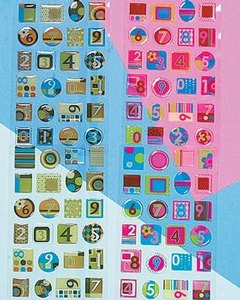 四角と丸の形をした数字のエポクシー(樹脂盛り)シールです。 2シートがセットになります。左側のシートはもう少し明るいオレンジになります。スクラップブッキングやカードクラフトにどうぞ。