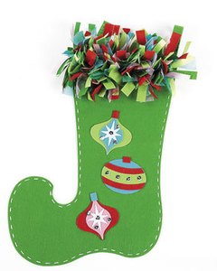 2枚のブーツ型を縫い合わせ、縁をキットのフェルトストラップとリボンで豪華に飾るキットです。アップリケがアクセントになっています。本格的なクラフトキットで、中学生から大人向けになります。