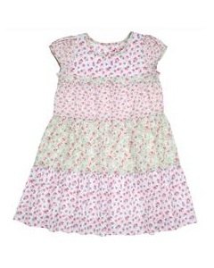 [デザイン] 4種類の布がパッチワーク風に切り替わった、かわいいワンピ。薄手のコットンで涼しいです。