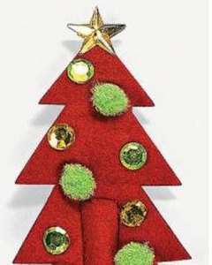 クリスマスツリーの形をした鉛筆用の飾り、5個の出品です。フェルト製。片面が赤、もう片面が黄緑でクリスマスらしいデザインです。